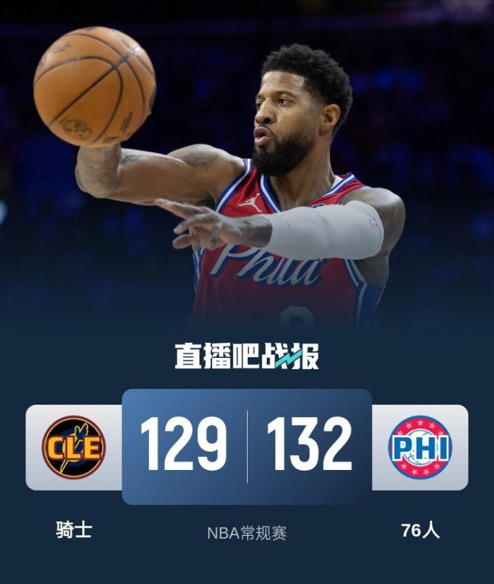 乔治30+5 米切尔37+7 杰罗姆三分8中8 76人爆冷胜骑士止7连败